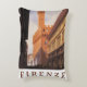 Oude illustratie Europese reisposter van Florence, Firenze, Italië met de Palazzo Vecchio (stadhuis), een mooi gebouw met klassieke Italiaanse romaanse architectuur. Een indrukwekkend fort-achtig paleis met uitzicht op het plein Piazza della Signoria met standbeelden.