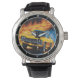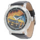 Dit levendige horloge is voorzien van een klassieke gele spierwagen omringd door dynamische oranje vlammen. De intense kleuren en krachtige beelden creëer een spannend en gedurfd ontwerp. Ideaal voor autoliefhebbers en verzamelaars, dit unieke uurwerk maakt een opvallende uitspraak op elke pols.