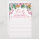 Voeg een oprechte activiteit toe aan uw tropische baby shower met deze Family Traditions-souvenirkaart. Gasten worden uitgenodigd om een favoriete jeugdtraditie te delen en een prachtig collectie van herinneringen en advies voor het nieuwe gezin te creëren. Met roze flamingo's, waterverf bloemen en palmbladeren, is deze kaart een perfecte aanvulling op een zomerdouche of een luau-thema. · Waterverf flamingo & tropisch floraal ontwerp · Prompt: "Deel uw favoriete familietraditie" · Lijnwerk voor gemakkelijk schrijven en aandenken-waardige notities · Coördineert met het Flamingo Baby shower Collectie