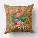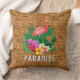 Een roze flamingo, tropische bloemen en bladeren op geweven teenwilgentenpringspatroon maken stijlvolle kussens van het zomerthema. Punten in onze winkel koppelen.