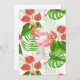 Waterverf met flamingo bloemen en vogels, monstera en palmbladeren.