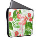 Waterverf met flamingo bloemen en vogels, monstera en palmbladeren.
