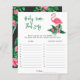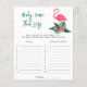 Het baby shower uitnodigingsontwerp heeft roze flamingo met weelderige groene bladschijfjes en tropische hibiscusbloemen. "Aloha Baby". Een tropisch bloemenpatroon met zwarte achtergrondkleur kleedt zich op de achterkant van de kaart.