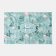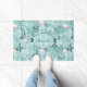 Deze deurmat bevat een prachtig patroon van flamingos omgeven door overvloedige tropische bladeren en orchideeën in zacht wazig roze en blauwgroen. Er is een label verstrekt voor jouw naam en monogram of andere tekst. Zoek ID868 om andere producten met dit vrolijke, summiere patroon te zien.