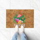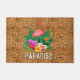 Een roze flamingo, tropische bloemen en bladeren met het woord PARADISE of een andere formulering die je kiest op een geweven teenwilderpringspatroon, maakt een stijlvol zomerthematormat. (Niet echte teenwilgen, het is een afbeelding die in volledige kleur is gedrukt.) Punten in onze winkel koppelen.