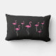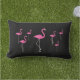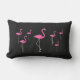 Deze pret en tropisch openluchtkussen zijn verfraaid met heldere roze flamingo's op een zwarte achtergrond, die tot het maken de perfecte zomertoebehoren voor het strandhuis, van het poolhuis, van het plattelandshuisje, van het terras, van het dek of van de pool gebied.