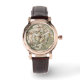 Classy & Classic - Antieke stijl Olde Flat Earth Ancient Wereldkaart polshorloge met zwart of bruin lederen band en zilveren omlijsting.