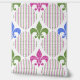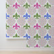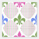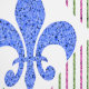 Wit met faux blauw getint paarse, magenta en groene glitter Mardi Gras fleur de lis patroon van Holiday Hearts Design (rechten voorbehouden).