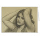 Een potloodonderzoek van de jongedame in Renaissance ging haar lange haar over haar schouders trekken. Kunstwerk van John Waterhouse, kunstenaar uit het Victoriaans tijdperk.