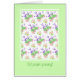 Een zeer 70e Birthday Kaart, met een patroon van roze rozen, roze witte Mock Oranje en paars Lavender op een witte achtergrond met een bleke groene grens, van een handbeschilderd waterverf ontwerp door Judy Adamson. U kunt het binnenbericht personaliseren.