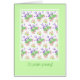 Een zeer 75th Birthday Kaart, met een patroon van roze rozen, roze witte Mock Oranje en paars Lavender op een witte achtergrond met een bleke groene grens, van een handbeschilderd waterverf ontwerp door Judy Adamson. U kunt het binnenbericht personaliseren.