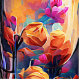 Floral Abstract Art Oranje Red Blue Flowers Foto Statuette