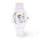 Een kolibrie horloge ideaal voor vogelliefhebbers met een kolibrie omringd door bloemen die vrij van tijd drijven, zoals de legende zegt. Deze prachtige bloemsiervogelkunst is van mijn glasschilderij en de achtergrondkleur kan worden veranderd in pak. Copyright Annabel Potter