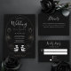 Een stijlvolle, gotische, magnetische trouwuitnodiging in zwarte, gouden tinten en wit. Het bevat een floreel lijst met rozen. Deze uitnodiging mengt een gedenkwaardige stemming met elegantie, zodat je je bruiloft kunt ontwerpen zoals je kiest. Voeg gewoon jouw tekst toe, voeg deze uitnodiging toe aan je wagen, dan heb je een bruiloft die je nieuwe leven begint en het allemaal tot het einde ziet. Floral Black Gothic Wedding Magnetic Invitation Holidayday Design | ©Melissa Patton - Ontwerper