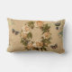 "Floral Bouquet Roos Flowers Bee n Ephemera Sierkussen, Lumbar." Een elegante, collage bestaande uit antiek Victoriaans botanische kunstwerken met prachtige herfstkleurige rozen en bladeren met vlinders en een koningin met kroon. De achtergrond is een gedempt afbeelding van het damesbehang en gelaagd manuscript van handgeschreven brieven die in kalligrafie handschrift van ephemera worden gecreeerd. Dit kunstwerk werd grafisch ontworpen door internationaal erkende kunstenaar, Audrey Jeanne Roberts, auteursrecht.