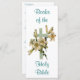 Een mooie kaart die perfect kan worden gebruikt als bladwijzer voor je bijbel. De voorkant heeft een blauw kruis bedekt met bloemen. De achterkant heeft de boeken van de nieuwe en oude getuigenis.