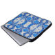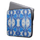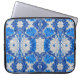 Laptophoes in een dampvormig patroon op basis van een William Morris-bloem, digitaal versterkt en gekleurd - tinten van middelmatig tot donker saffierblauw en wit, tegen een lichte zilvergrijze/grijze achtergrond