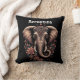 Een ingewikkeld ontworpen olifant staat majestueus, versierd met prachtige bloemenpatronen. Het zachte licht van de dageraad versterkt zijn elegantie en symboliseert kracht en schoonheid in natuur.