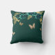 Floral Emerald Gold Tiara Butterfly Quinceanera Throw Pillow