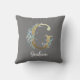 Goud monogram/initiaal G met waterverf bloemen en bladeren op zwarte achtergrond. Pas met uw eigen tekst/familienaam in moderne manuscriptdoopvont aan