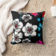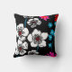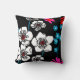 Helder vet bloempatroon op een zwarte achtergrond. Deze kussen geven elk decor een nieuwe blik.