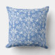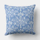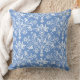 Een vierkant gooiend kussen met een elegant damesmedallion van maisen en bladeren met witte rollen op korenbloemblauw.