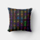 Floral Old English Sierkussen met een Keltisch gevoel, gedaan in meerdere kleuren op een zwarte achtergrond.