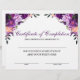 Professioneel, , certificaat van voltooiing. Ideaal voor lessen, trainingscursussen, scholen, zakelijke cursussen en nog veel meer. Pas aan met uw douanetekst. Elegant Waterverf Paarse Ultra Violet Floral met paarse bloemen, pinda's en botanische groen.