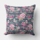 Floral Pattern on Stripe Rozen Foliage Pink Paars Kussen