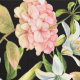 Floral Pattern Pink Hydrangea Blue Jasmine Foliage op zwarte achtergrond.