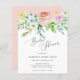 Floral budget brudal doucheuitnodiging met rozen, bloemen en groen geverfd met zachte pastelkleuren en "Vrijgezellenfeest" in een elegant en delicaat script. Het belangrijkste kleurenschema is koraal met een perzikondertoon. Een mooi botanisch ontwerp, perfect voor een lente- of zomerfeest. Deze goedkope bruiddoucheuitnodigingen worden op papier gedrukt voor een budgetvriendelijke optie.