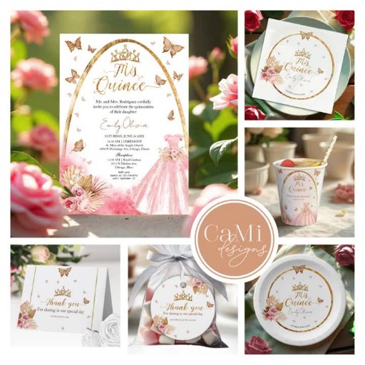 Maak kennis met de Gilded Tiara & Arch Lijst Quinceañera Invitation! Dit betoverende ontwerp is voorzien van een prachtige roze blush jurk versierd met delicate bloemen en vlinderaccenten, perfect voor het vieren van deze gedenkwaardige gelegenheid. Deze uitnodiging is gemaakt met elegantie in het achterhoofd en legt de essentie van een Quinceañera prachtig vast, waardoor het een perfecte keuze is voor uw speciale dag. Ontworpen door CaMiDesigns, zal deze uitnodiging zeker indruk maken op uw gasten. Voor hulp bij bestellingen, verzending, productinformatie en meer kunt u rechtstreeks contact opnemen met Zazzle Customer Care.