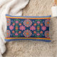 Floral Rangoli Pattern Border, Blue Lumbar Pillow Kussen