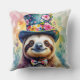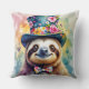 Een demper luiaard in een hoge hoed gedaan in bloemige waterverven.