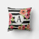 Een leuke en trendy, florale waterverf, gestreept, stijlvolle kussen die je kunt personaliseren met initiaal! Dit ontwerp heeft tot vervelende zwarte en witte strepen geleid, met prachtige waterverf bloemen. Pas de kussen aan met uw initiaal of naam. Eenvoudig aan te passen! Design door Bohemian Girl.