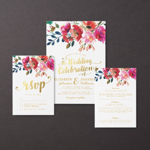 Elegant Floral Watercolor Gold Invitation SuiteOntworpen door Elaine Foster