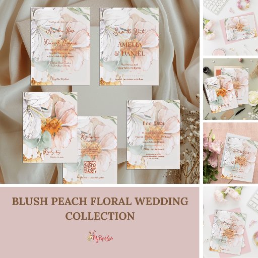 Blush Peach Floral Wedding Invitation SuiteOntworpen door Mypaperlove Designs
