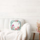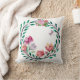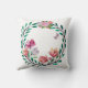 Deze elegante bloemenkrans heeft delicate pastelbloemen. Groene bladeren vormen de basis van de krans, die is gelaagd met bloemen, in zachte pastelroze en perzik. In de krans bevindt zich een kleine drakenvlieg. Het ontwerp is aan beide kanten van het kussen.