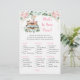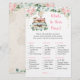 Deze elegante 'Wat Zit Er In Je Tas'-kaarten zijn een geweldige manier om het feest op je bruiloftsfeest te beginnen en zullen zeker een grote hit zijn! Geef ze gewoon rond tijdens het bruiloftsfeest waar de gasten plezier zullen hebben door hun tassen te doorzoeken en de items op de lijst af te vinken als ze die hebben. Degene met de meeste punten wint! Het ontwerp bevat koffers en een globe met roze waterverf bloemen en nep goudkleurige confetti.