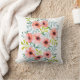 Waterverf roze bloemen en groene/blauwe bladeren illustratie op de gooiende kussen.