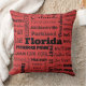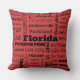 Decoratieve kussens zijn een stijlvolle manier om persoonlijkheid toe te voegen aan elk huis. Deze show een collage van namen van populaire steden in Florida in zwart op lippenrood, en de achterkant is stevig zwart.