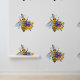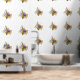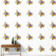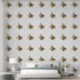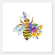 Artistically drawn, flower, honey bee with contrasting colors, yellow, bright, blooming california poppy and blue wild plants on white background.