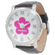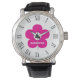 Flower Classic Zwart en Wit Roze Custom Name Horloge