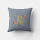 Bloemenkussen met een bloemenkrans en een schattig handgeschreven script initiaal. Geweldig Gooi kussen voor uw interieur. Aanpassen door uw achtergrondkleur te kiezen