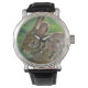Dit schattige konijntje is in acryl geschilderd. Leuke close-up van de pluizige hoppy kleine schurk.