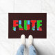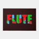 Fluittekst in kleurrijke blokken omgeven door een luik patroon is een uniek cadeau ontwerp voor houtblazers, muziekleraren en studenten in concert en marcherende band.