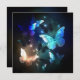 Fantastisch, gloeiend, blauw en geel, nachtvlinder op een donkere achtergrond.