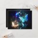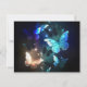 Fantastisch, gloeiend, blauw en geel, nachtvlinder op een donkere achtergrond.