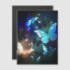 Fantastisch, gloeiend, blauw en geel, nachtvlinder op een donkere achtergrond.