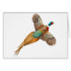 Origineel kunstontwerp van een vliegende Ringnek-fazant van ontwerper Carolyn McFann van Two Spinnende Cats Studio op een aanpasbaar wenskaart voor wilde vogelfans.
